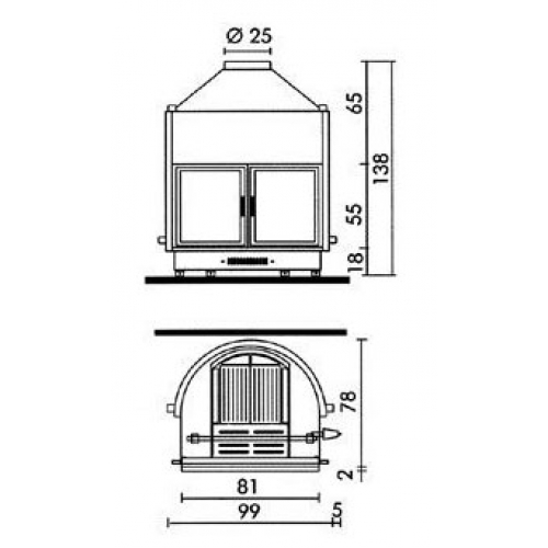 - Внутренние размеры топки, см 74x61x55h