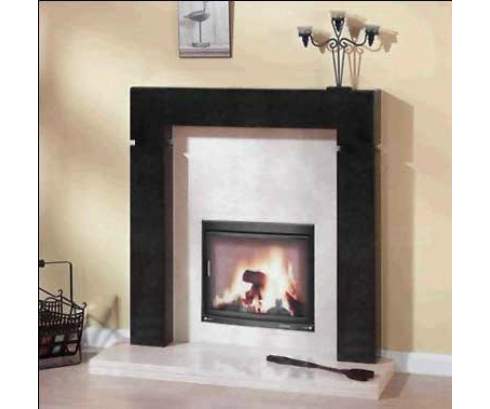 Этот камин, изготовленный из натурального камня черного и белого цвета, сочетает в себе простую форму и оригинальный дизайн. Контраст между колоннами и светлой частью фасада делает эту модель эффектной и запоминающейся.